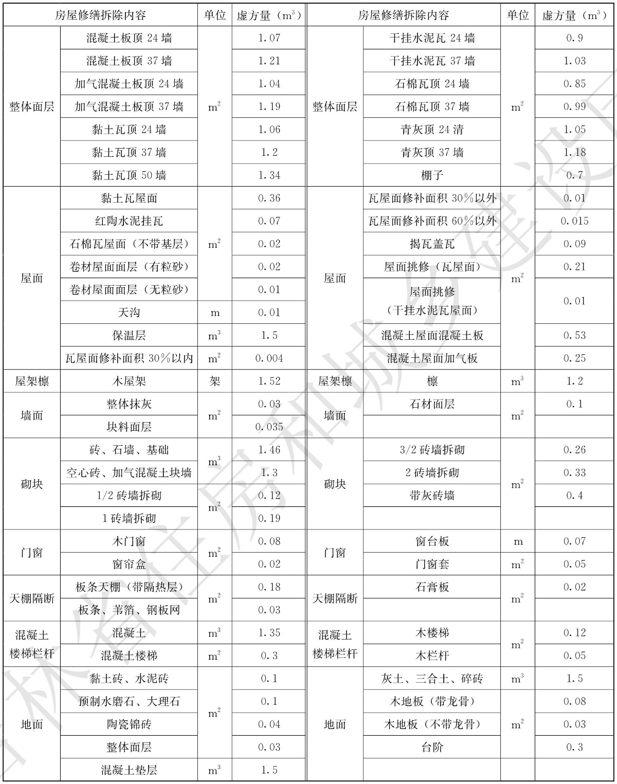 三、屋面平立面防水保温层(或防水层)与保护层(两层)一起拆除的项目乘以相应系数0.5,屋面平立面防水各构造层(三层及以上各层)同时拆除,按单独拆除各层定额乘以系数0.25。