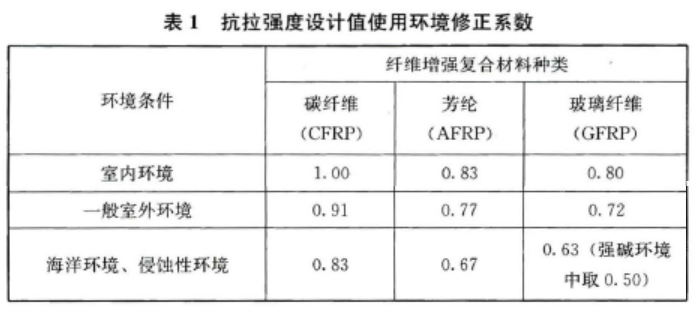 3 由于复合材料由纤维、基体树脂以及浸润剂等多种材料复合而成,其长期性能受环境作用影响,因此,根据本条第1款、第2款确定的复合材料强度设计值需要按照本款规定进行修正。