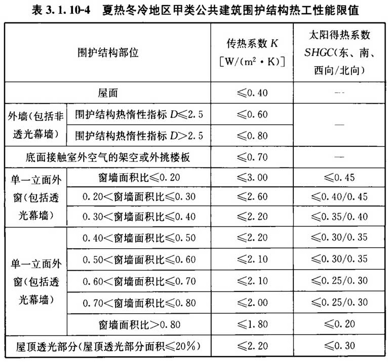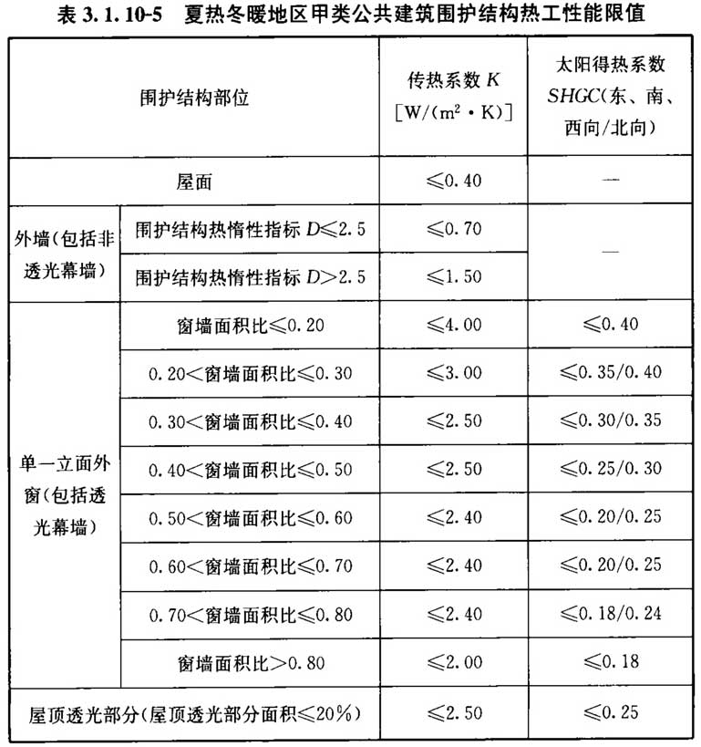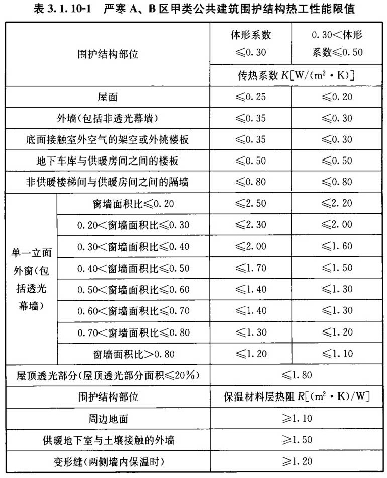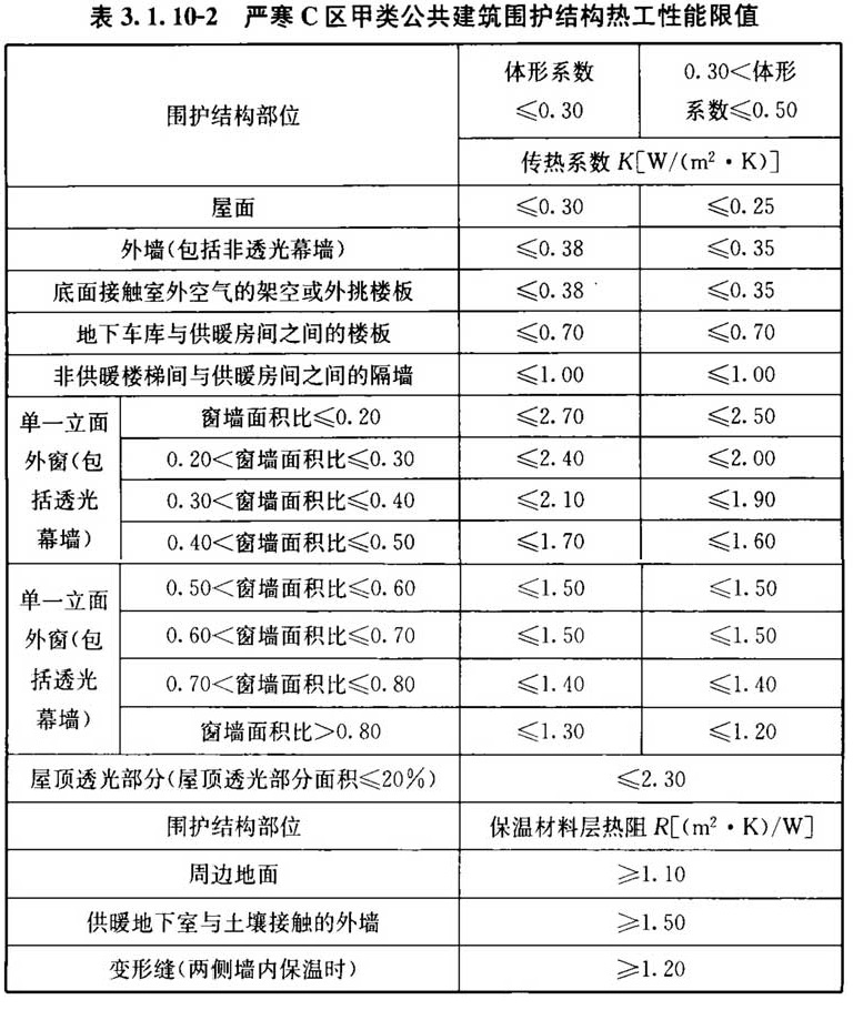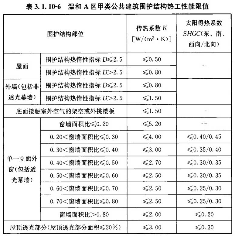 3. 1. 10 甲类公共建筑的围护结构热工性能应符合表3. 1. 10-1~表3. 1. 10-6的规定。