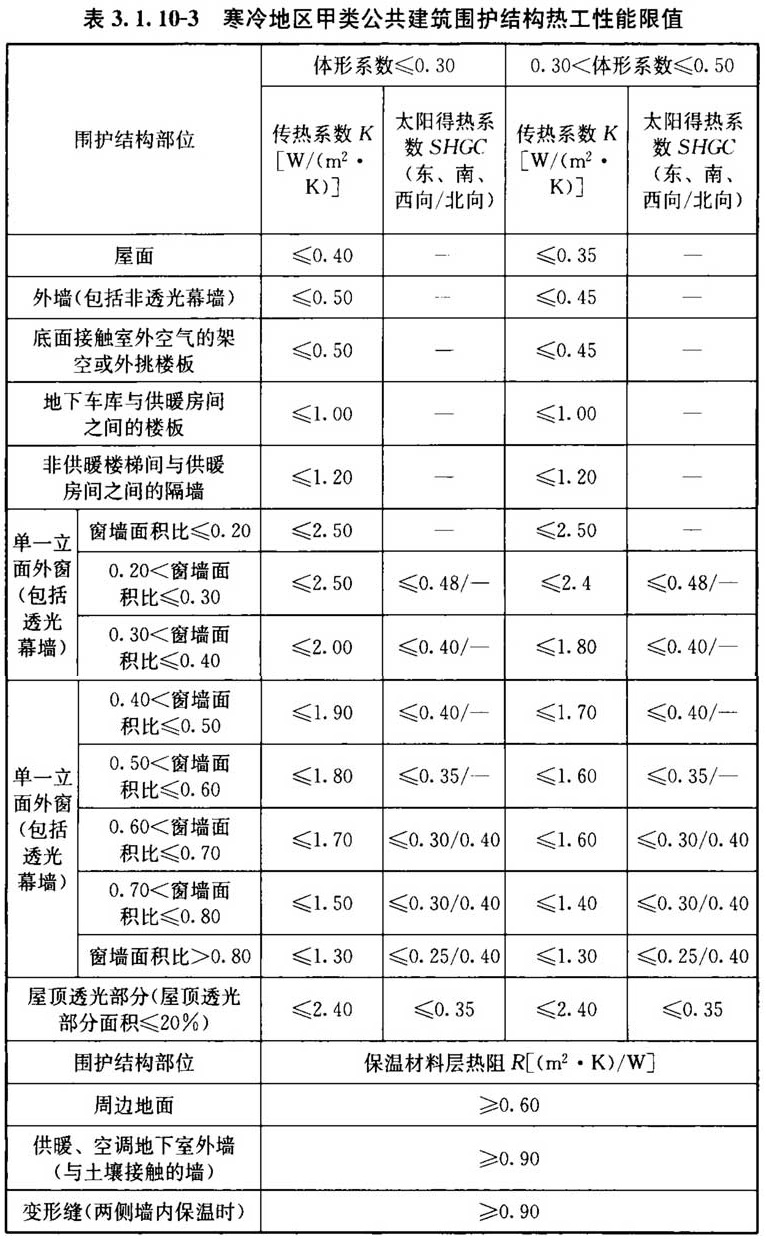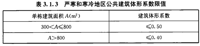 3. 1. 3 严寒和寒冷地区公共建筑体形系数应符合表3. 1. 3的规定。