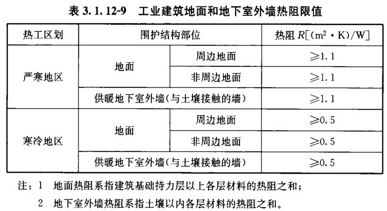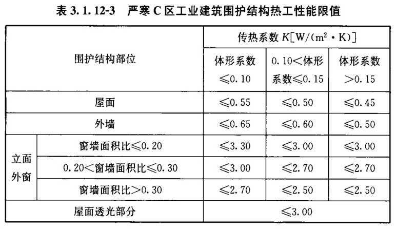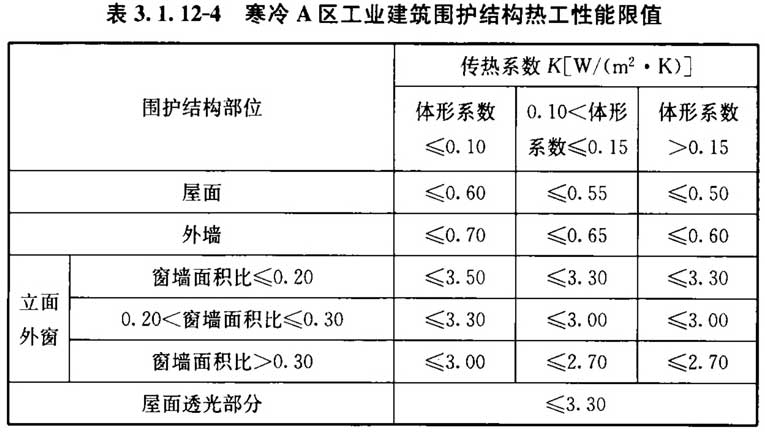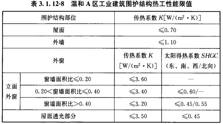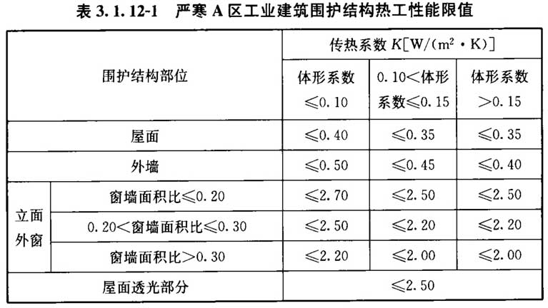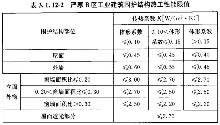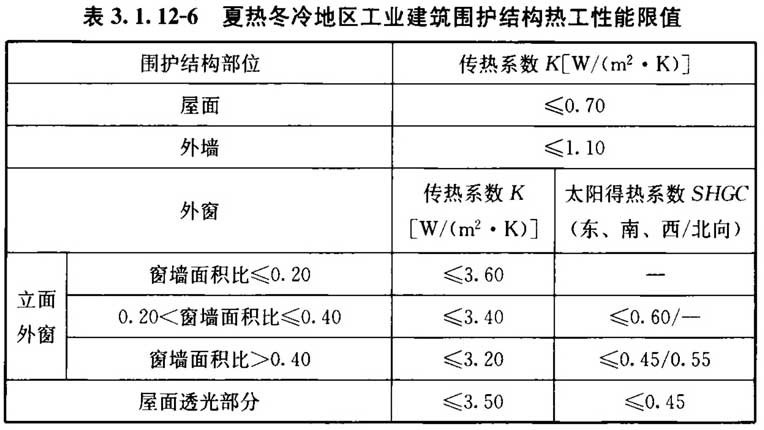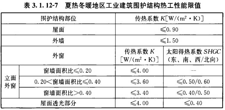 3. 1. 12 设置供暖空调系统的工业建筑围护结构热工性能应符合表3. 1. 12-1~表3. 1. 12-9的规定。