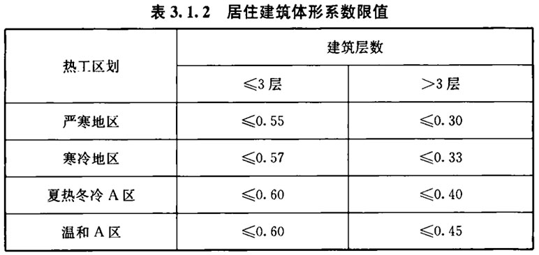 3. 1. 2 居住建筑体形系数应符合表3. 1. 2的规定。