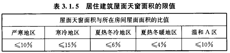 3. 1. 5 居住建筑的屋面天窗与所在房间屋面面积的比值应符合表3. 1. 5的规定。