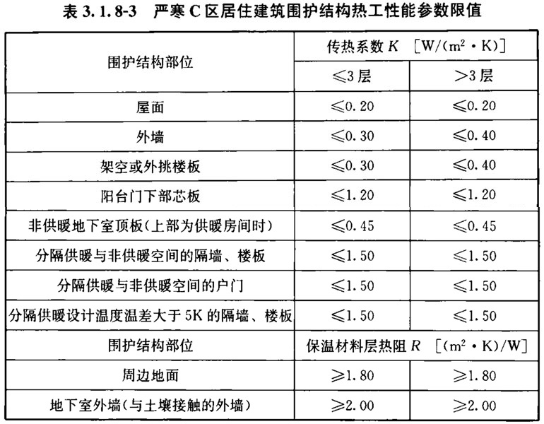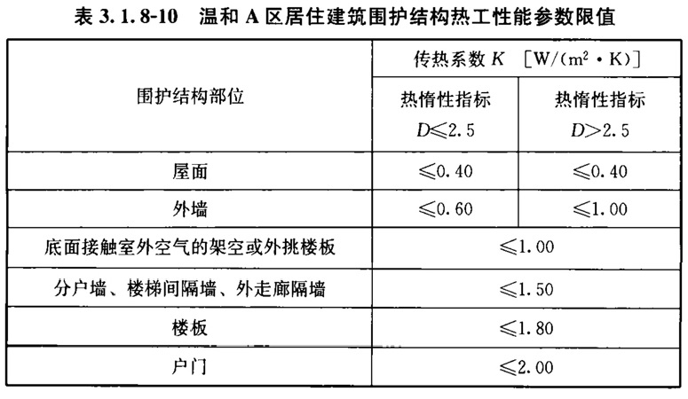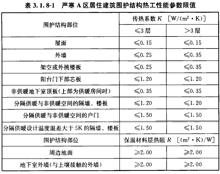 3. 1. 8 居住建筑非透光围护结构的热工性能指标应符合表3. 1. 8-1~表3. 1. 8-11的规定。