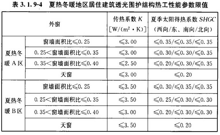 3. 1. 9 居住建筑透光围护结构的热工性能指标应符合表3. 1. 9-1~表3. 1. 9-5的规定。