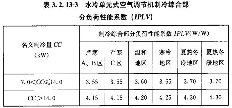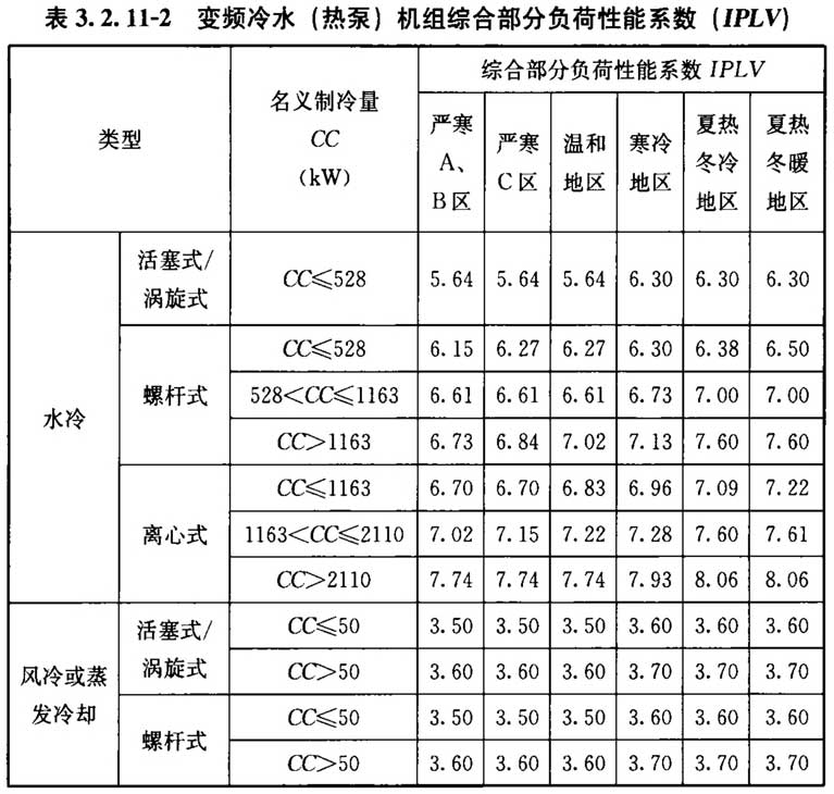 3 变频水冷机组及风冷或蒸发冷却机组的综合部分负荷性能系数(IPLV)不应低于表3. 2. 11-2中的数值。