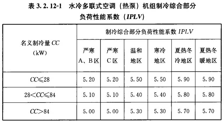 3. 2. 12 采用多联式空调(热泵)机组时,其在名义制冷工况和规定条件下的能效不应低于表3. 2. 12-1、表3. 2. 12-2的数值。