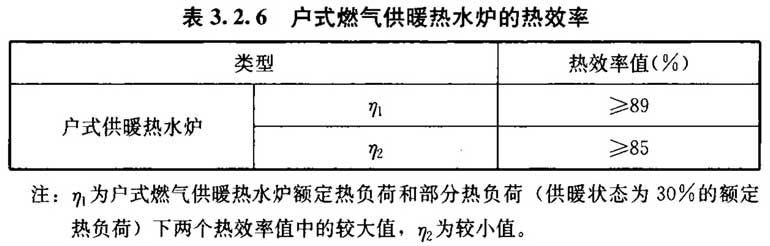 3. 2. 6 当设计采用户式燃气供暖热水炉作为供暖热源时,其热效率应符合表3. 2. 6的规定。