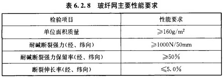 6. 2. 8 玻纤网的主要性能应符合表6. 2. 8的规定。