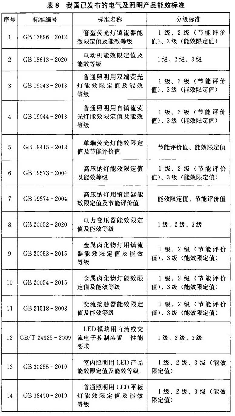 到目前为止,我国已发布的电气及照明产品能效相关标准如下表所示: