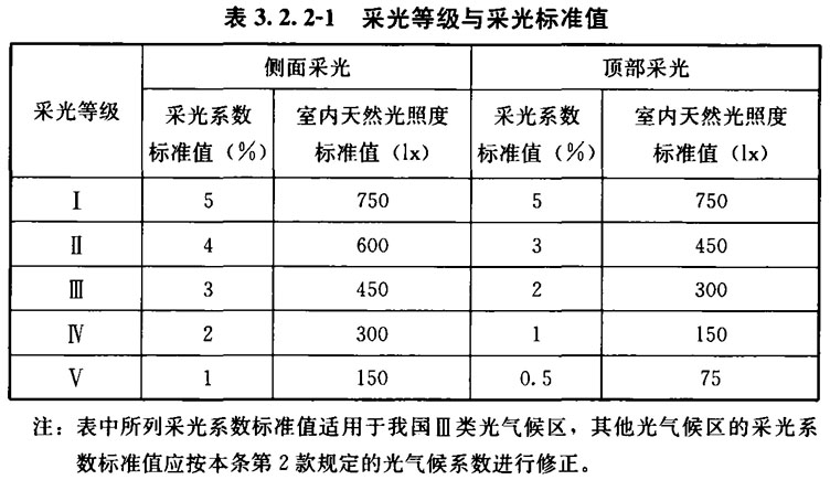 3. 2. 1 采光设计应根据建筑特点和使用功能确定采光等级。