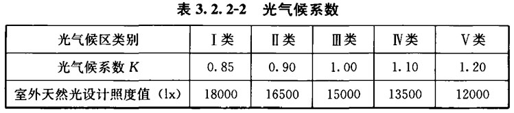 2 光气候区划应按本规范附录B确定。各光气候区的光气候系数应按表3.2.2-2确定。
