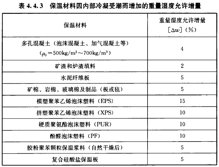 [△ω]——保温材料因内部冷凝受潮而增加的重量湿度的允许增量(%),应按本规范表4. 4. 3的规定取值;