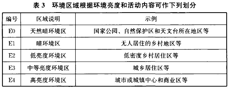 3. 4. 2 灯具的上射光通过大气散射使夜天空发亮,妨碍天文观测,另一方面对上射光进行限制也是为了使光充分照在被照场地上,有利于节能(表3)。