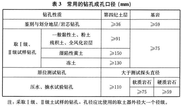 常用的钻孔成孔口径见表3。