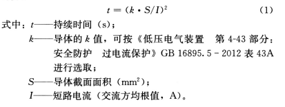 2) 当短路持续时间小于0.1s 时,要求计入短路电流非周期分量的影响,所以不能通过上述公式计算时间t, 可查阅生产厂商技术资料中的能量值I2t 来校验是否满足k2S2>I2t 。