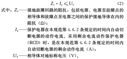 1) 采用TN-S (TN-C-S) 系统时,保护电器的动作特性以及回路的阻抗应符合下式要求: