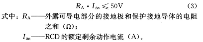 2) 采用TT系统时,通常采用剩余电流保护电器(RCD)做接地故障保护,保护电器的动作特性应符合下式要求: