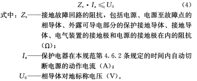 当故障回路的阻抗足够小,且稳定可靠时,也可采用过电流保护电器做接地故障保护,保护电器的动作特性以及回路的阻抗应符合下式要求: