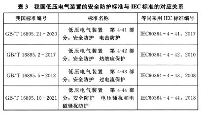 4. 6. 1 国际电工委员会IEC对低压电气装置的安全防护有系统性的标准,我国国家标准等同采用IEC 标准,见表3 。本节是安全防护中电击防护的内容。