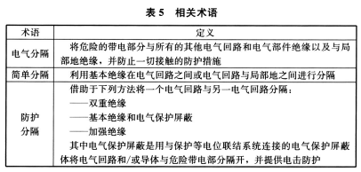 4. 6. 4 《电击防护 装置和设备的通用部分》GB/T 17045-2020/IEC 61140: 2016 定义了相关术语,见表5 。