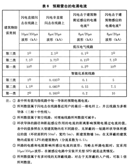 1 当闪电直接闪击引入防雷建筑物的架空或室外明敷设的线路上时,安装在此处的电涌保护器需完全承受闪电直接闪击在线路上的预期雷击的电涌电流,此预期雷击的电涌电流为10μs/350μs 波形,因此应选择Ⅰ 级试验的电涌保护器。