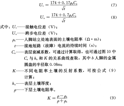7. 2. 11 对于高压供配电系统中性点为高电阻接地方式或谐振接地方式,发生单相接地故障后,未迅速切除故障时,变电所接地装置的接触电位差和跨步电位差不应超过下列数值: