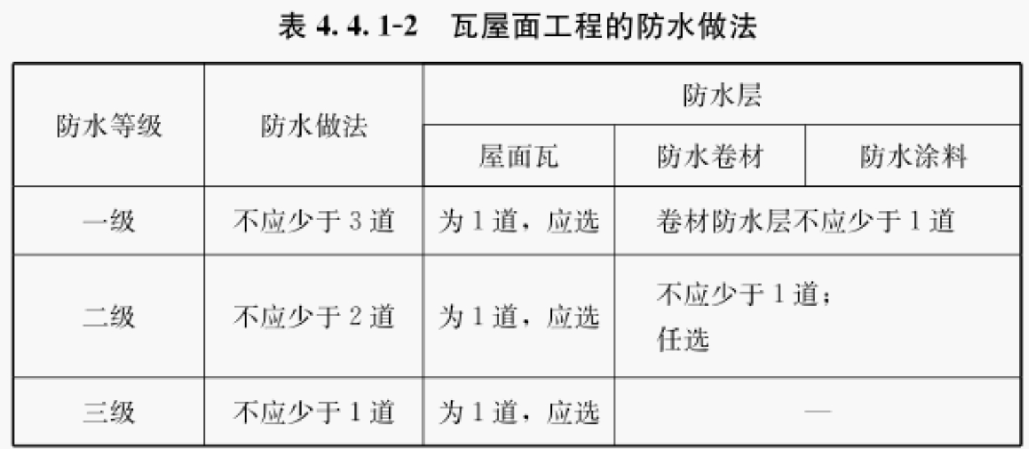 2 瓦屋面工程的防水做法应符合表4. 4. 1-2的规定。