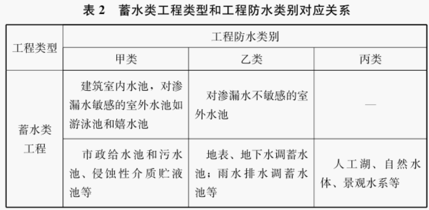 2. 0. 3 本规范依据工程类型与工程防水功能重要程度划分工程防水类别,分为甲、乙、丙三类。其中,甲类工程的防水功能重要程度最高,乙类次之,丙类最低。
