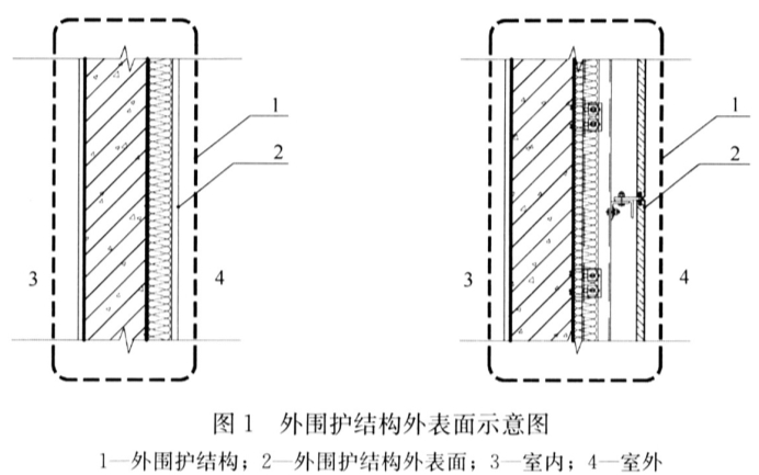 3. 1. 1 本条对面积计算的界面作出了规定。条文中的“每个自然层”为非单层建筑时,建筑面积应为建筑各自然层面积的总和;“楼(地)面处”是指楼(地)面的设计完成面,对于没有结构楼板的地面,应为混凝土垫层顶面;“外围护结构”是指外墙,包括作为外围护结构的玻璃幕墙、金属幕墙、石材幕墙、人造板材幕墙等;“外表面”是指外围护结构的设计完成面,建筑外围护结构一般由墙体、保温层、饰面层组成,设计完成面即装饰面层外边线;当幕墙作为外围护结构时,“外表面”为幕墙面板外边线(见图1)。