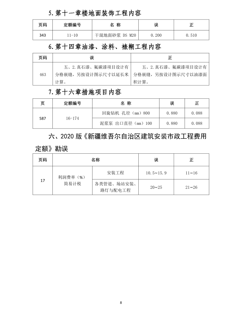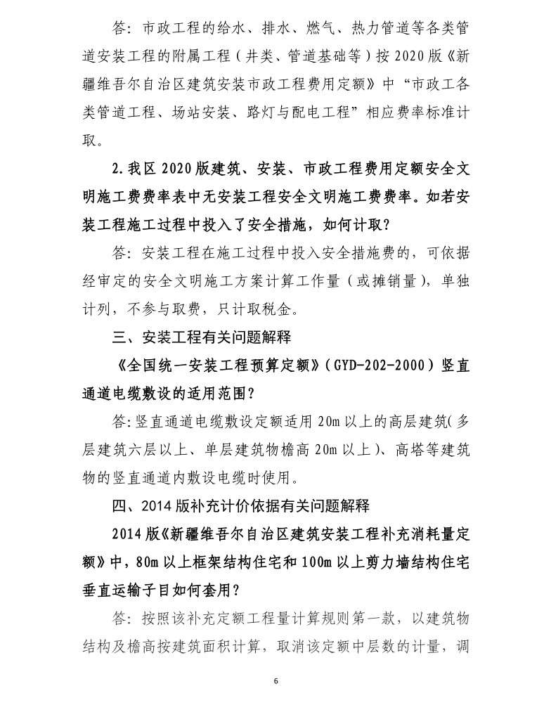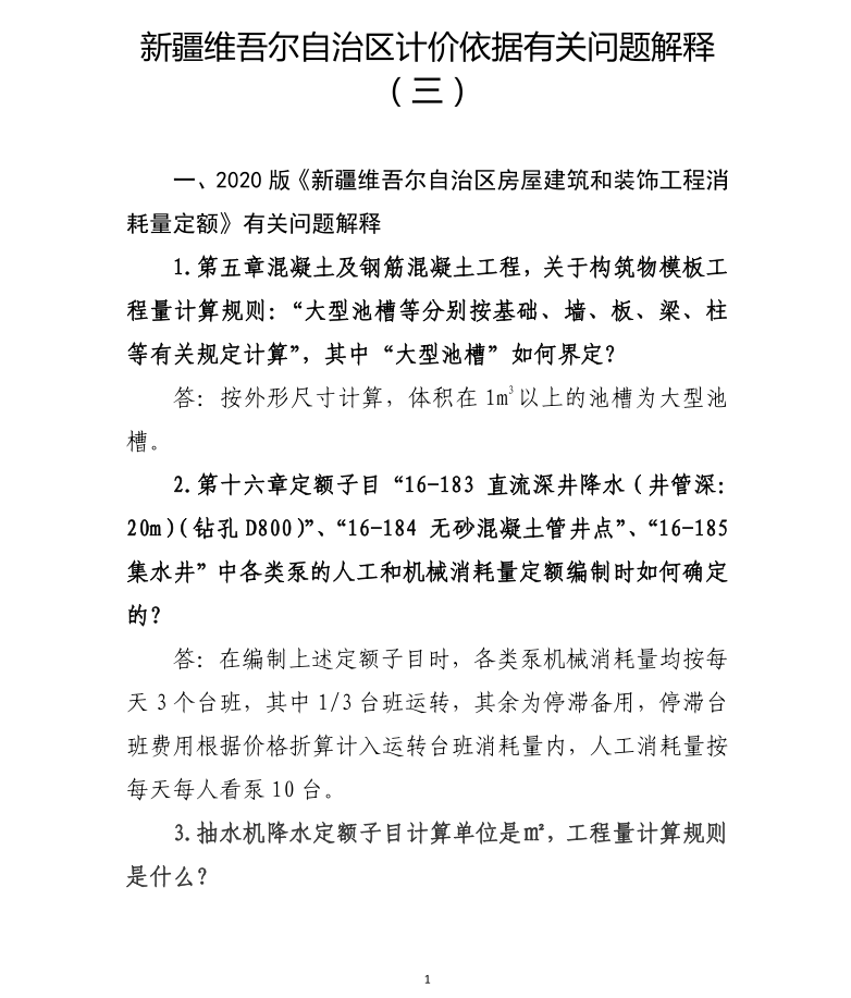 2020版新疆维吾尔自治区计价依据有关问题解释(三)