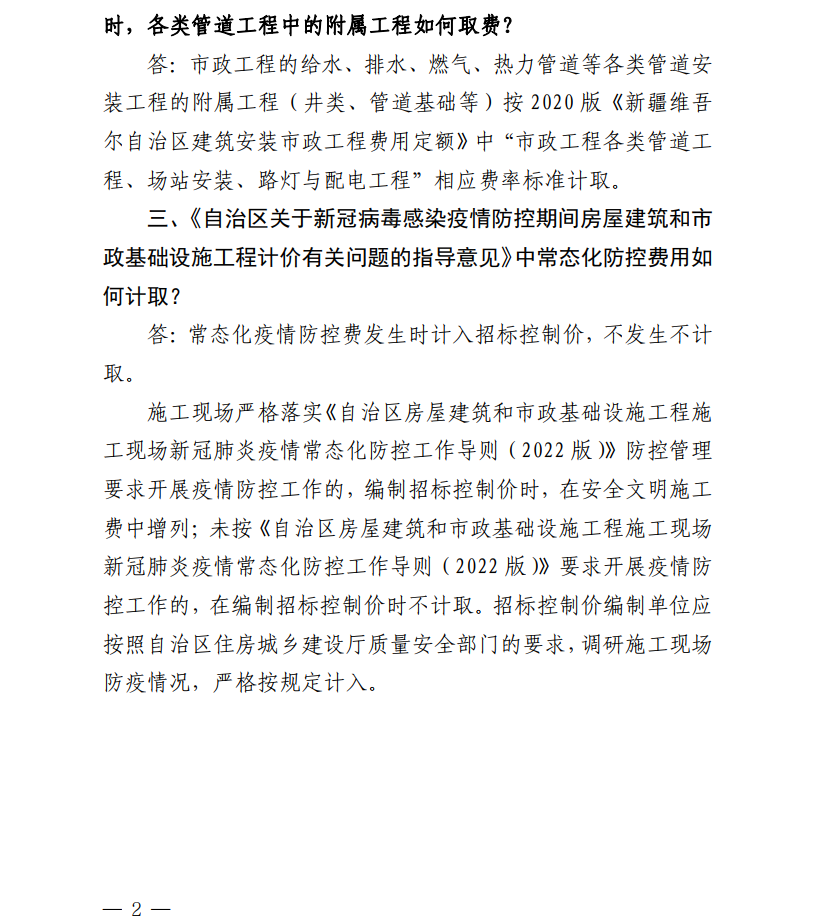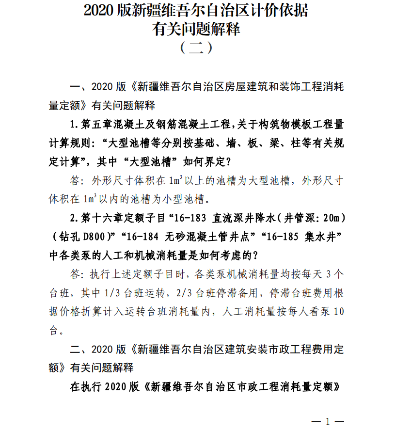 2020版新疆维吾尔自治区计价依据有关问题解释(二)