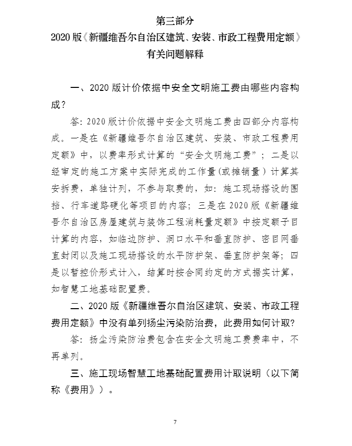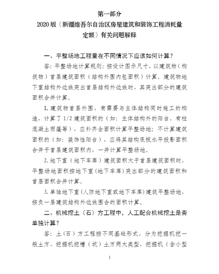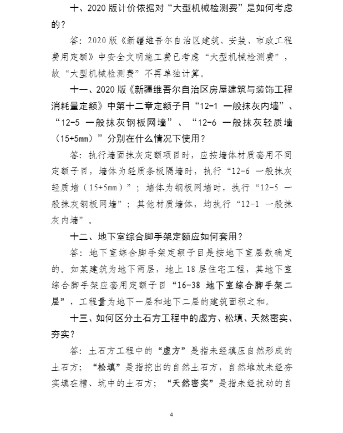 2020版新疆维吾尔自治区计价依据有关问题解释